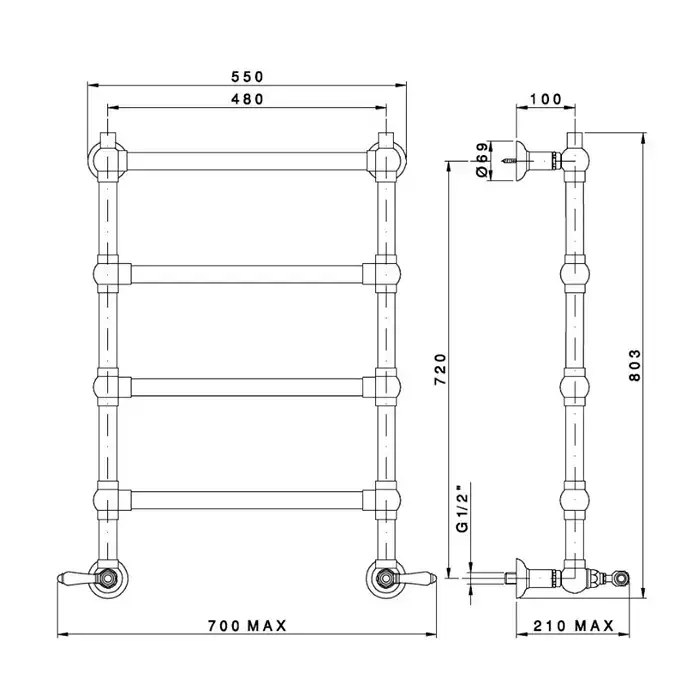 NICOLAZZI EL CAPITAN Полотенцесушитель водяной 55(70)х80.3см., цвет: черный матовый