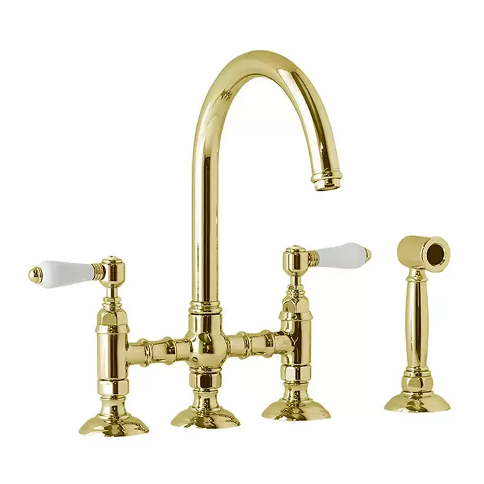 Nicolazzi El Capitan Смеситель для кухни, на 4 отв., с вытяжным ручным душем, цвет: Gold