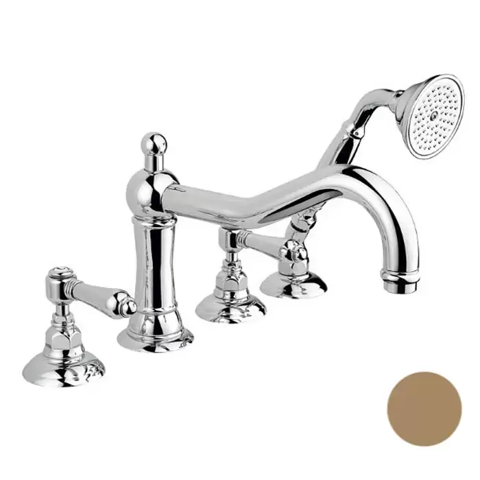 Nicolazzi El Capitan Смеситель для ванны на 4 отверстия, изливом 246мм и ручным душем, цвет: бронза