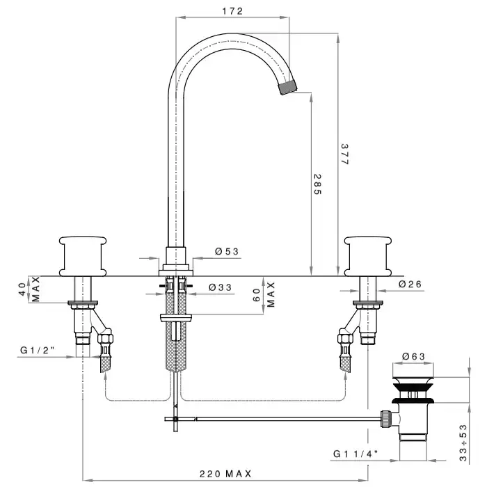 Nicolazzi Festival Смеситель для раковины на 3 отв., цвет: NEM +ручки FESO005+FESO006