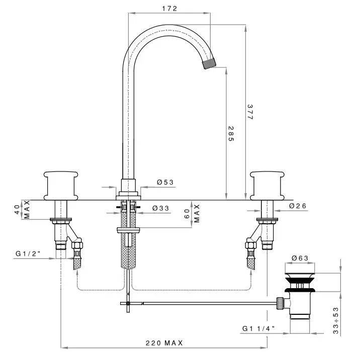 Nicolazzi Festival Смеситель для раковины на 3 отв., цвет: NEM +ручки FESP003+FESP004