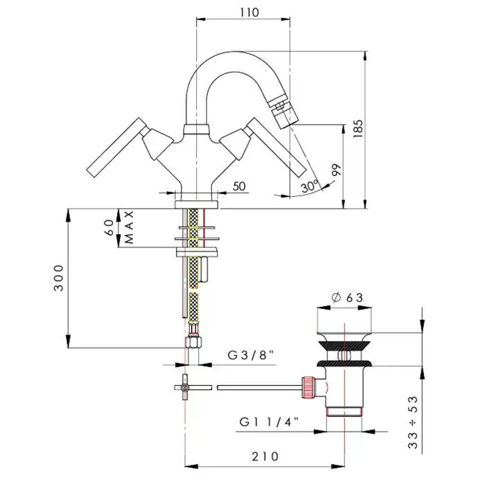 Nicolazzi Flag Смеситель для биде, на 1 отв., с донным клап, цвет: хром