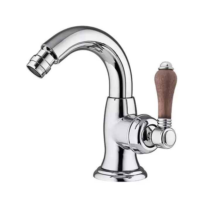 Nicolazzi Forest Смеситель для биде, на 1 отв, с донным клапаном, излив: 132 мм, ручки дерево, цвет: хром