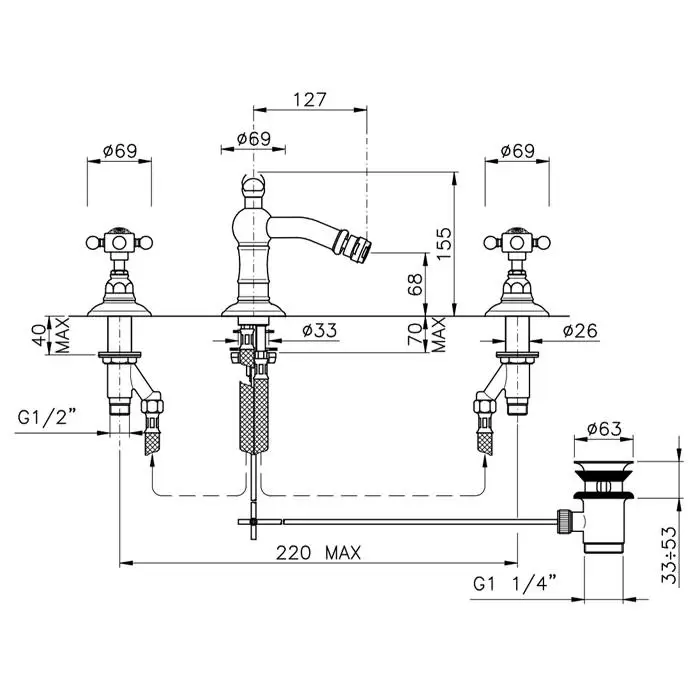 Nicolazzi Half Dome Crystal Смеситель для биде на 3 отверствия с донным клапаном, излив: 127 мм, цвет: хром