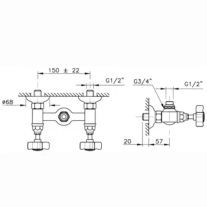 Nicolazzi Half Dome Смеситель для душа на 2 отверстия, вывод сверху 1/2" (без шланга и лейки), цвет: хром