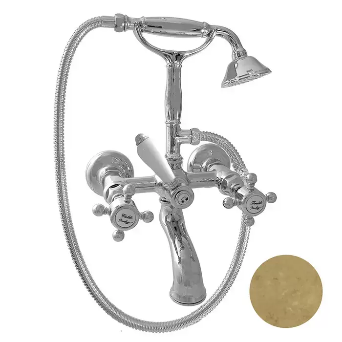 Nicolazzi Half Dome Смеситель для ванны на 2 отверстия, с ручным душем, цвет: натуральная латунь