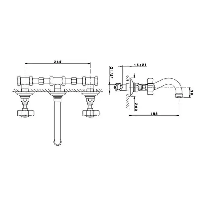 Nicolazzi Half Dome Смеситель настенный для раковины с 2мя ручками, цвет: хром