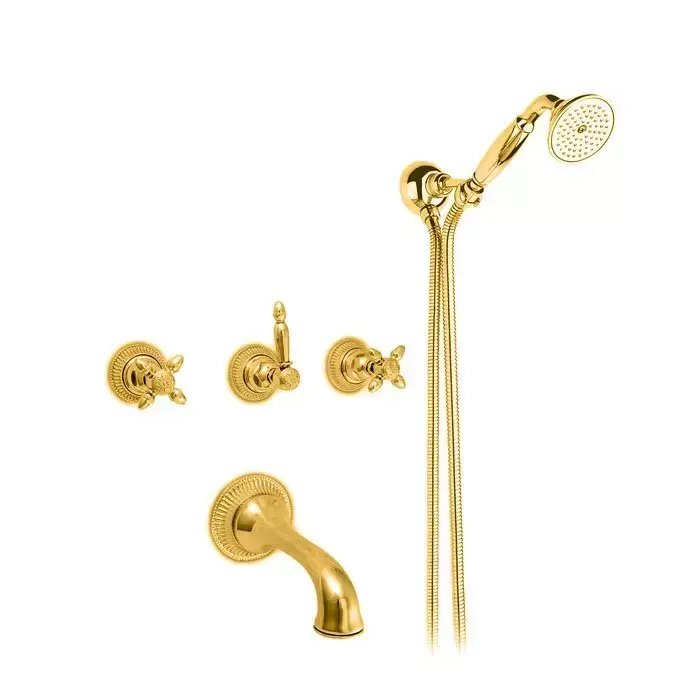 Nicolazzi Impero Смеситель для ванны с 2мя ручками, встроенный, вкл. внутр часть + комплект руч. душа, цвет: золото