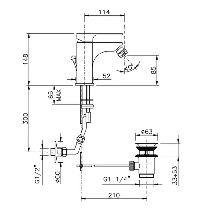 Nicolazzi Jungfrau Смеситель для раковины, на 1 отв, с донным клапаном, излив: 114 мм, цвет: хром