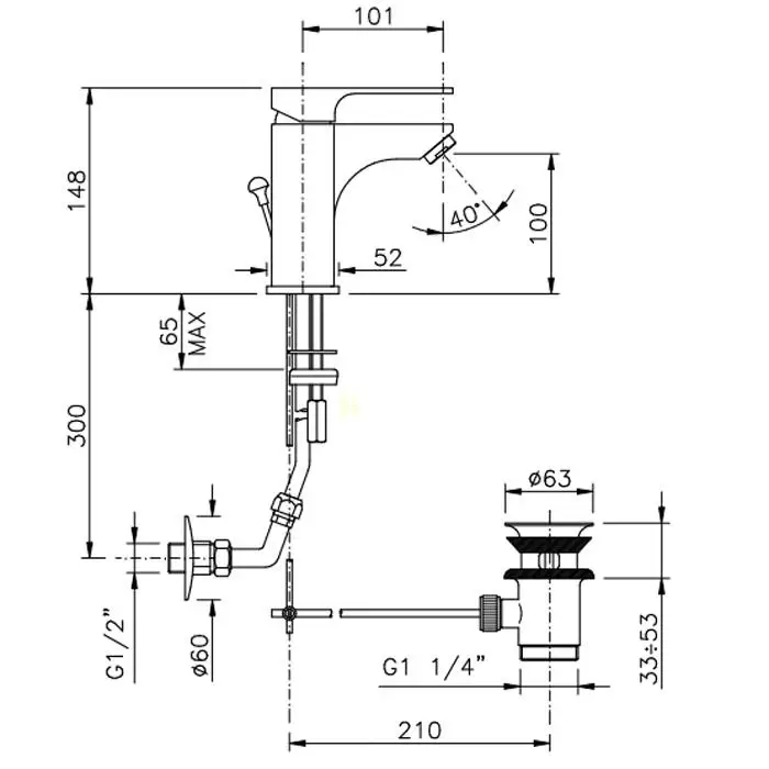 Nicolazzi Jungfrau Смеситель для раковины, с донным клапаном, на 1 отверствие, излив: 101 мм, цвет: хром
