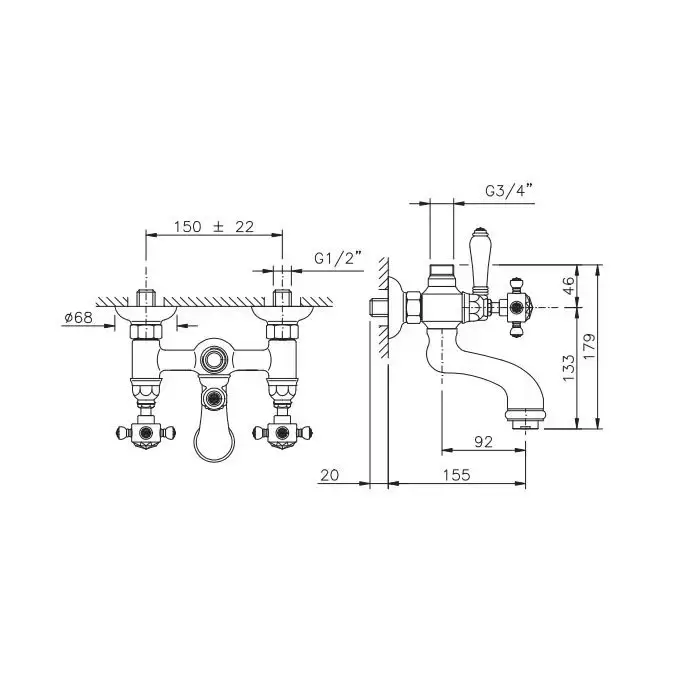 Nicolazzi Le Pietre Смеситель для ванны с 2мя ручками, вывод сверху 1/2, (для душ. стойки) цвет: хром