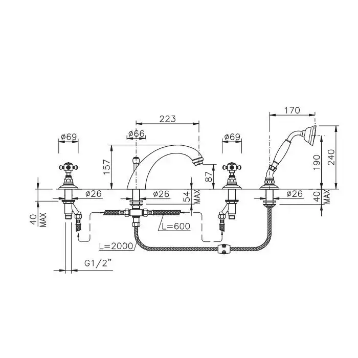 Nicolazzi Le Pietre Смеситель на борт ванны, 4 отв., излив: 223 мм, с ручным душем, цвет: хром
