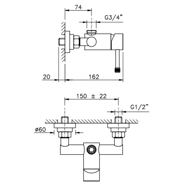 Nicolazzi Leva Arena Смеситель для душа на 2 отверстия, настенный, вывод сверху 3/4", цвет: хром