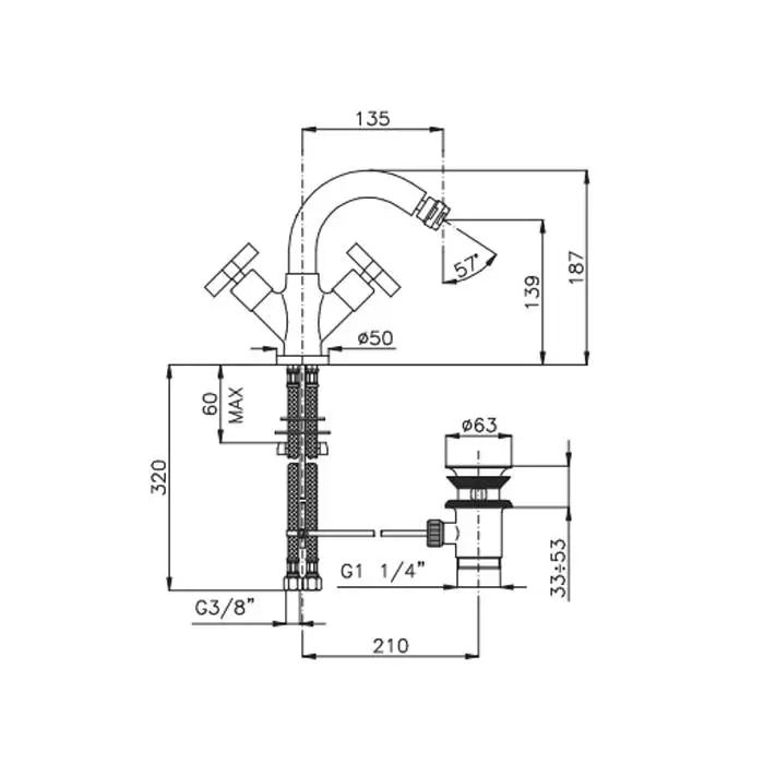 Nicolazzi M.Croce Смеситель для биде с 2мя ручками, излив: 135мм, цвет: хром