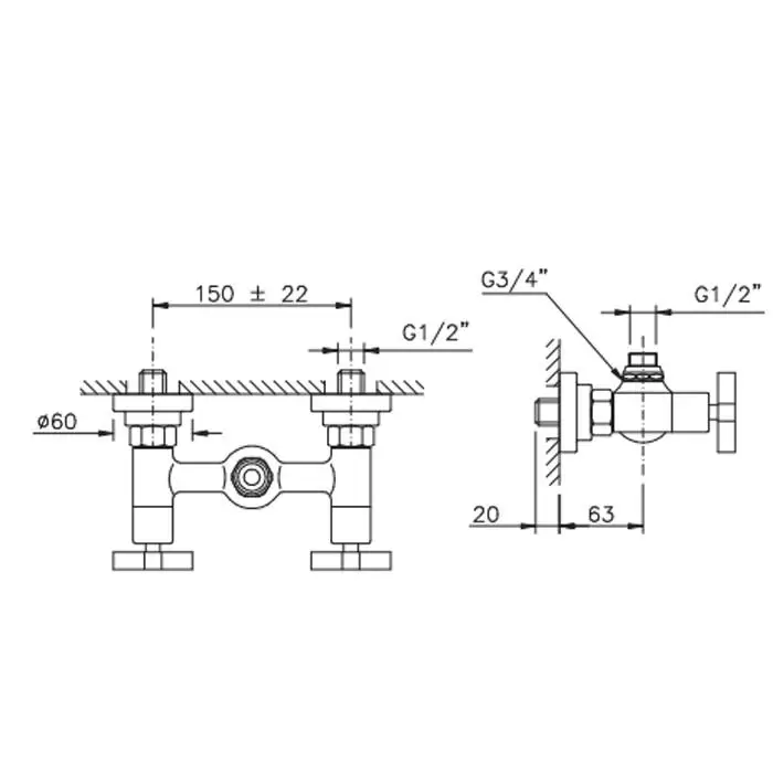 Nicolazzi M.Croce Смеситель для душа с 2мя ручками, вывод сверху 1/2, цвет: хром