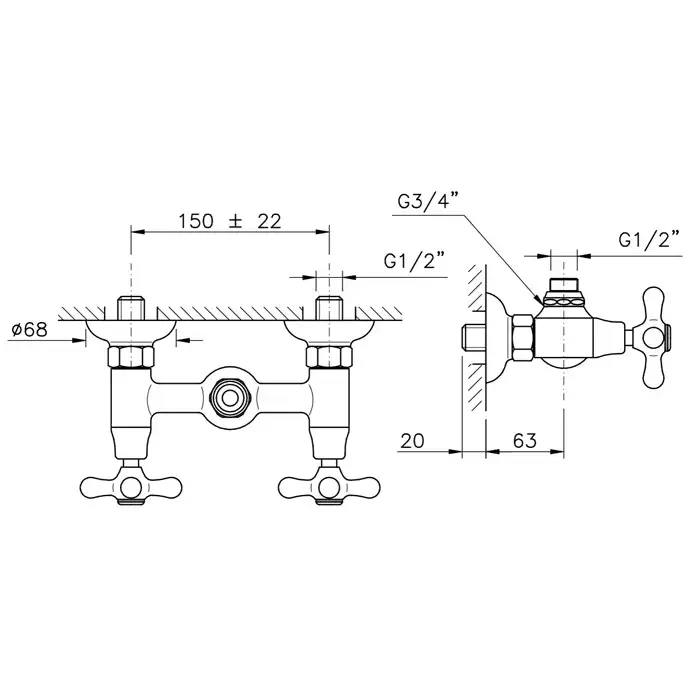 Nicolazzi Nuova Brenta Смеситель для душа с 2мя ручками, вывод сверху 1/2", без душевой лейки, цвет: хром