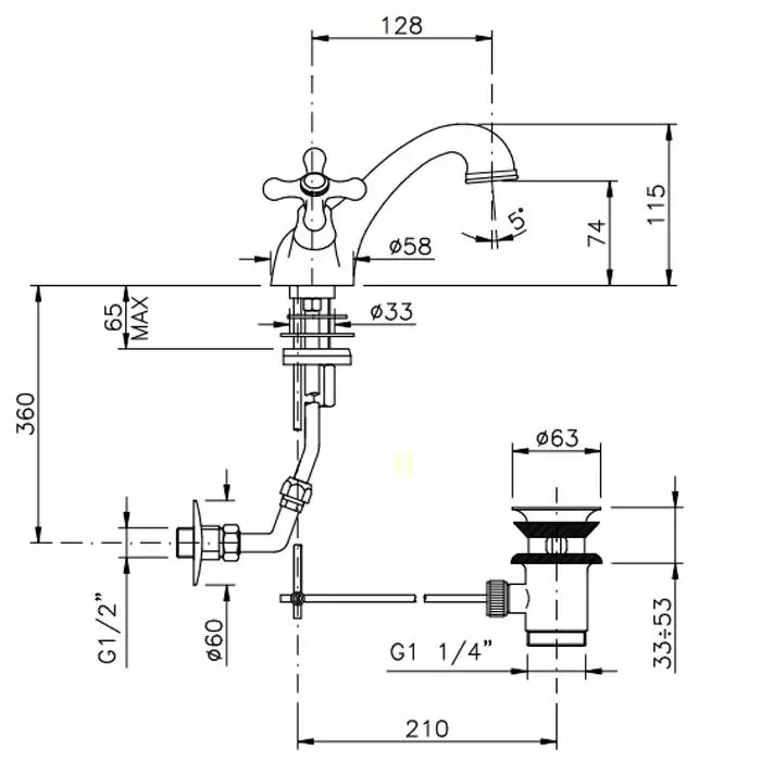 Nicolazzi Nuova Brenta Смеситель для раковины на 1 отверстие, излив: 128мм, с донным клапаном, цвет: бронза