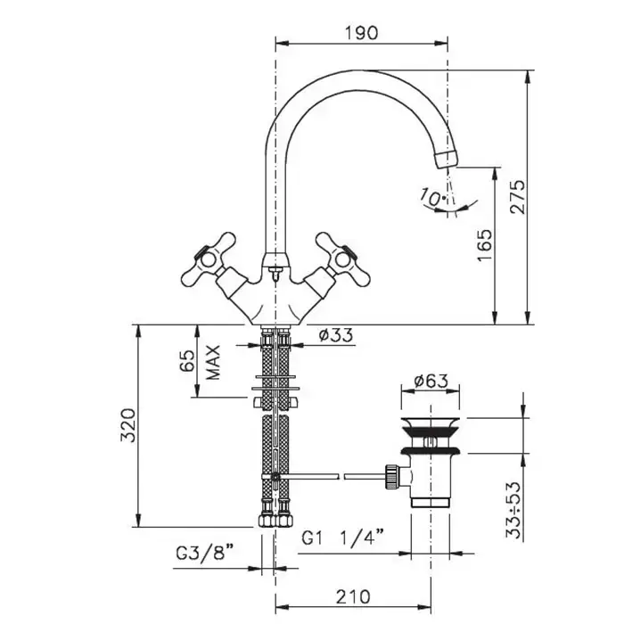 Nicolazzi Nuova Brenta Смеситель для раковины с 2мя ручками, поворотный излив: 190мм, с донным клапаном, цвет: бронза