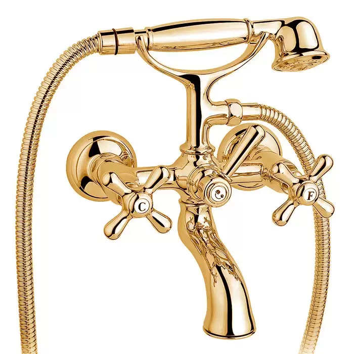 Nicolazzi Nuova Brenta Смеситель для ванны с 2мя ручками, настенный, с душевой лейкой, цвет: Gold Brass