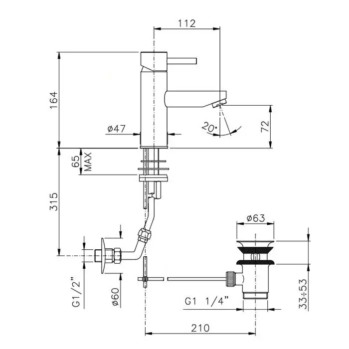 Nicolazzi Olympus Смеситель для раковины на 1 отверстие, с донным клапаном, излив: 112мм, цвет: хром
