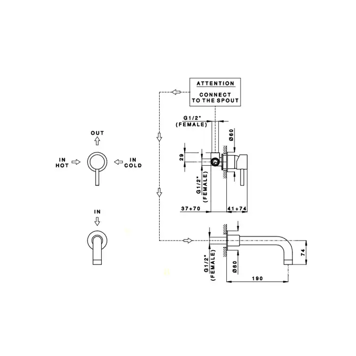 Nicolazzi Olympus Смеситель для раковины, встраиваемый, излив: 19см, цвет: черный матовый