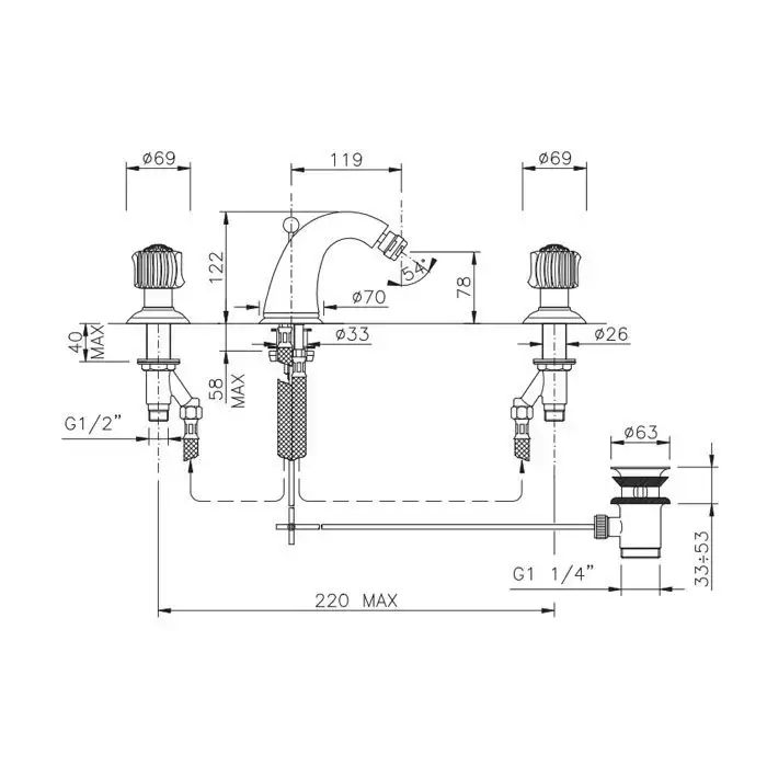 Nicolazzi Onice Смеситель для биде на 3 отверстия, излив: 119мм, цвет: золото