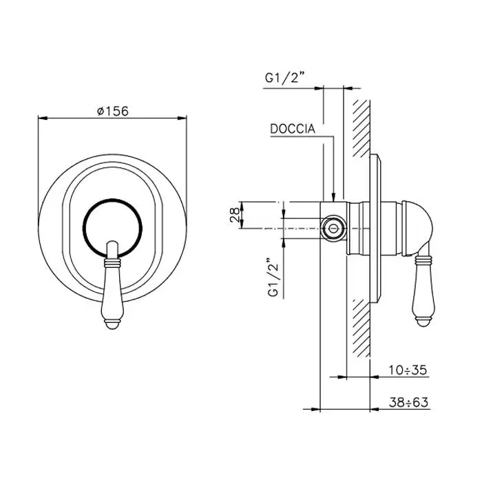 Nicolazzi P.m. Blanc A Встраиваемый смеситель для душа, 1 источник, ручки состаренная керамика, цвет: хром