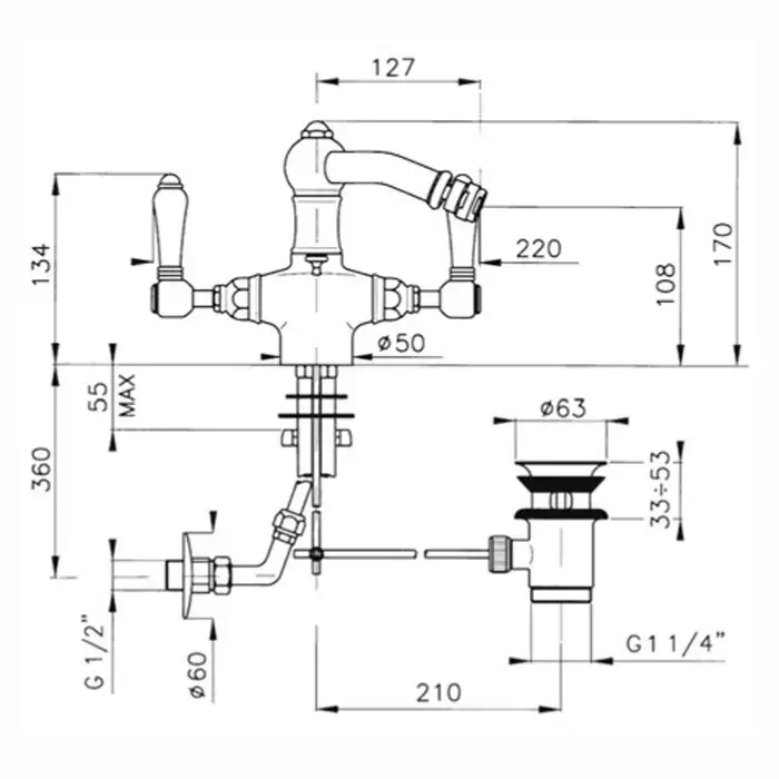 Nicolazzi P.m. Blanc Смеситель для биде, на 1 отв., поворотный излив: 12.7см, цвет: бронза