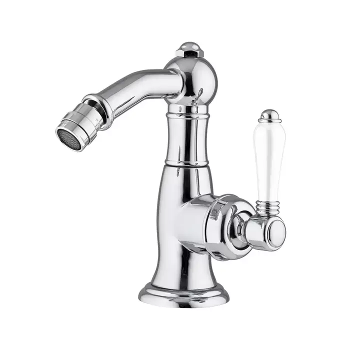 Nicolazzi P.m. Blanc Смеситель для биде, на 1 отв, с донным клапаном, излив: 127 мм, ручки белая керамика, цвет: хром