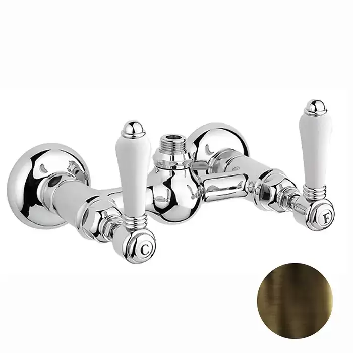Nicolazzi P.m. Blanc Смеситель для душа на 2 отверстия, вывод сверху 1/2" (без шланга и лейки), ручки белая керамика, цвет: бронза