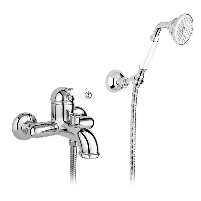 Nicolazzi P.m. Blanc Смеситель для ванны однорычажный, настенный, с ручным душем, ручки белая керамика, цвет: хром