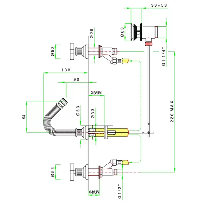 Nicolazzi Pantheon Смеситель для биде, на 3 отв., с донным клапаном,цвет: хром