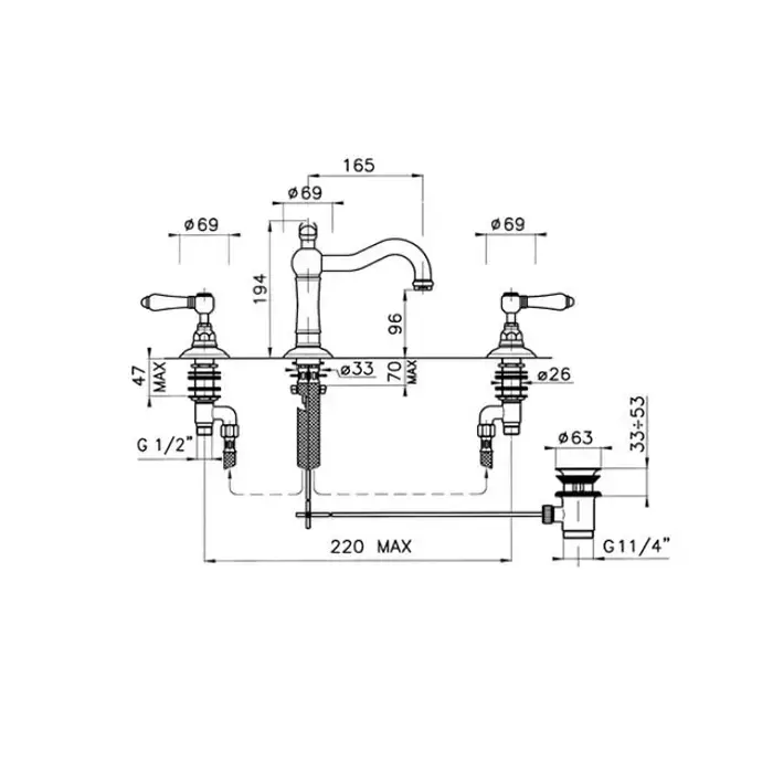 Nicolazzi Petit Mont Blanc Смеситель для раковины, на 3 отв.,с донным клапаном, излив: 165 мм, цвет: хром