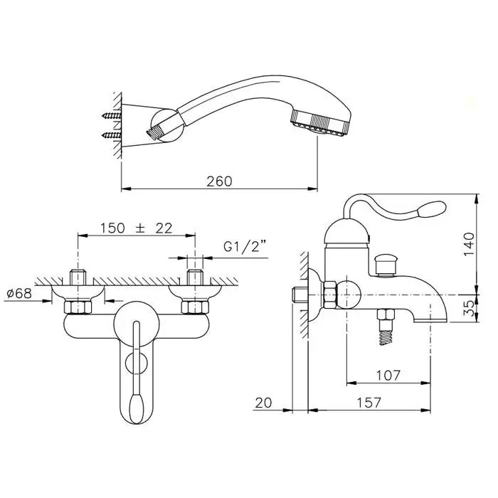 Nicolazzi Signal Смеситель для ванны с душем настенный на 3 отверствия, излив: 157 мм, цвет: хром