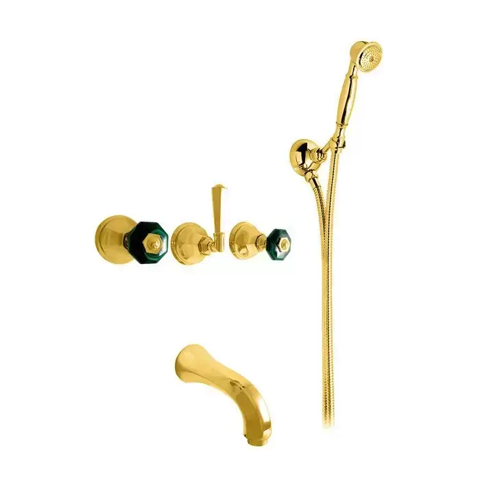 Nicolazzi Teide Chic Смеситель для ванны с 2мя ручками, встроенный, с ручным душем, вкл. внутр часть, излив: 168 мм, цвет: золото