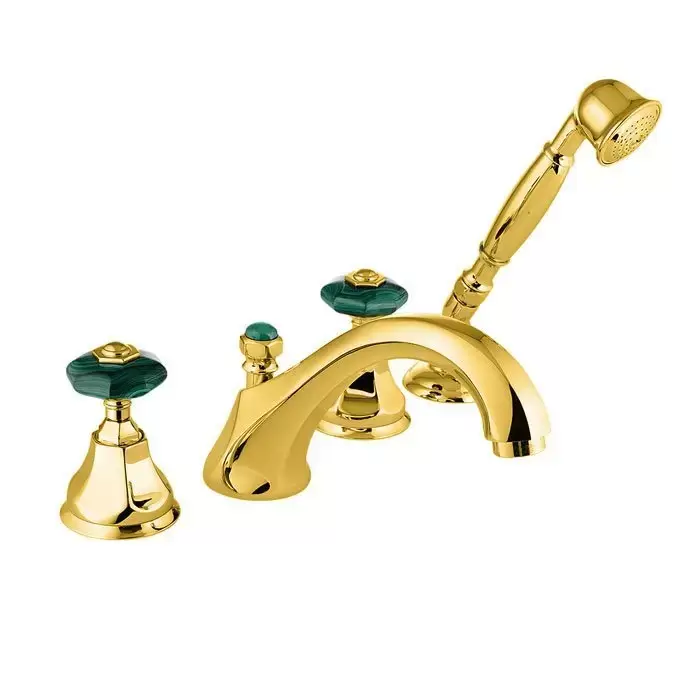 Nicolazzi Teide Chic Смеситель на борт ванны, 4 отв., излив: 223 мм, с ручным душем, цвет: золото