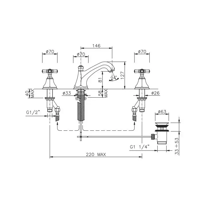 Nicolazzi Teide Four Смеситель для раковины на 3 отверствия, с донным клапаном, цвет: хром