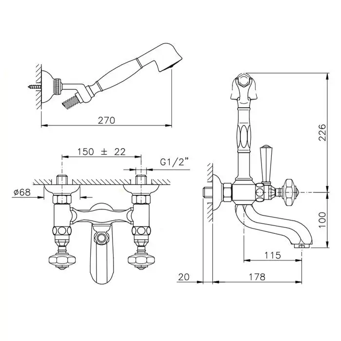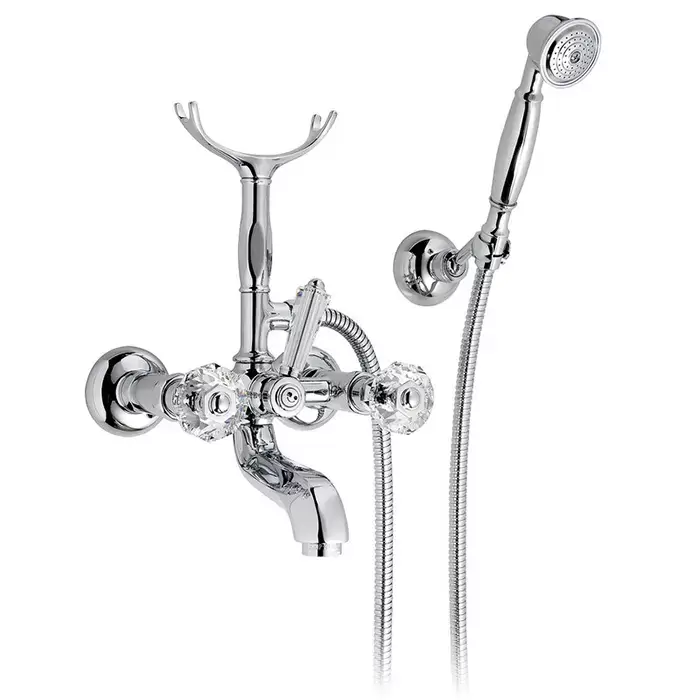 Nicolazzi Teide Смеситель для ванны с душем duplex настенный на 3 отверствия, излив: 178 мм, ручки Crystal handle, цвет: хром