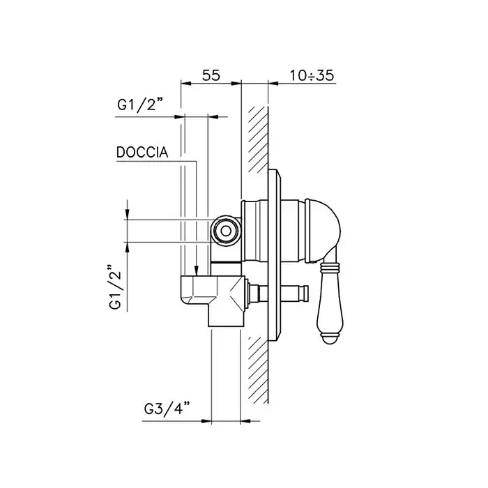 Nicolazzi Unico Встраиваемая часть для душа с переключателем, подключение смешанной воды 1/2" и 3/4"