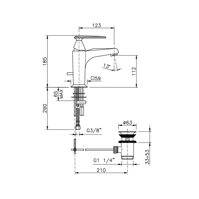 Nicolazzi Vincent Смеситель для раковины, 1 отв., с донным клапаном, цвет: English Gold