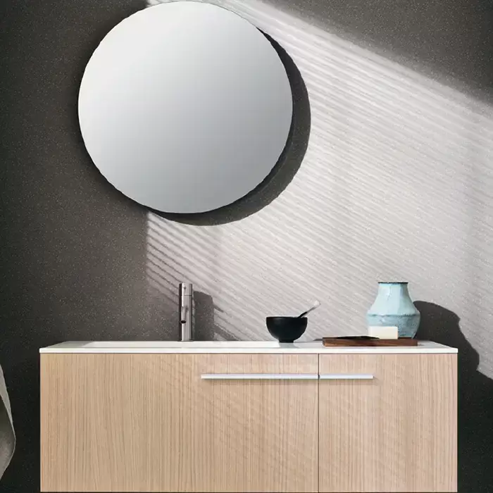 NOORTH milldue edition ONE Комплект мебели 108см, меламин, с интегрированной раковиной LAYER 02 и столешницей из Milltek solid light, зеркалом AIR, белыми матовыми ручками, подвесной, Цвет: venato vaniglia-731