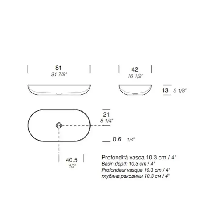 NOORTH milldue edition Раковина 81х42х13 см, без отв., накладная, цвет: белый