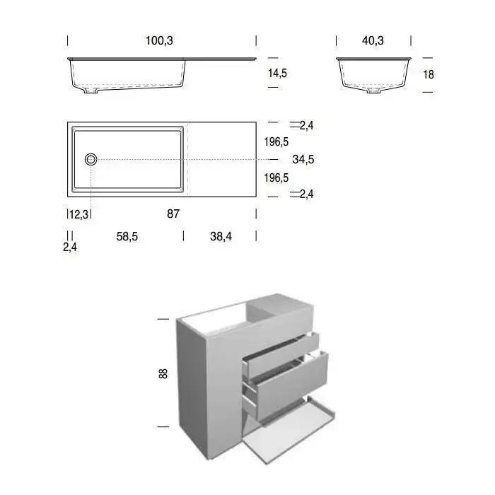 NOORTH milldue edition TOUCH Комплект мебели 100х40х88см, напольный, 3 ящика, слив в пол, раковина Milltek, смеситель H2O, цвет: Argilla матовый