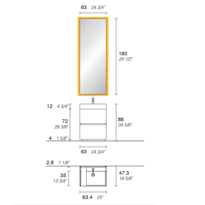 NOORTH milldue edition ZENIT Комплект мебели 63см в матовом лаке, с раковиной из CRISTALPLANT, зеркалом с 4-х сторонней подсветкой, напольный, Цвет: Grafite-33