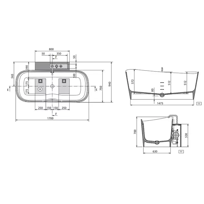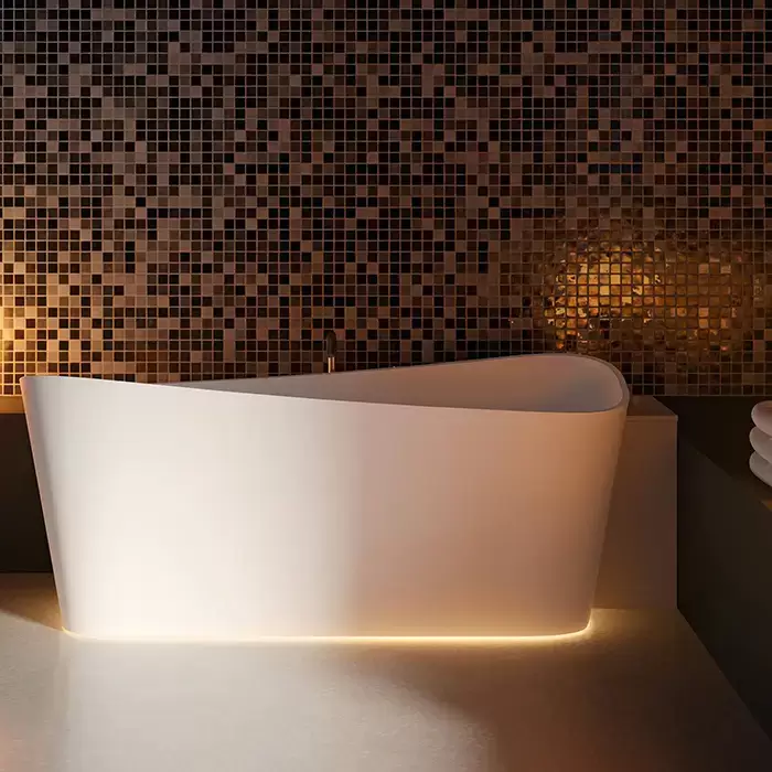 Novellini Infinitive Ванна угловая 184х90х70cм, Dx, в комплекте со смесителем хром, с донным клапаном click-clack, novotech, цвет: белый матовый