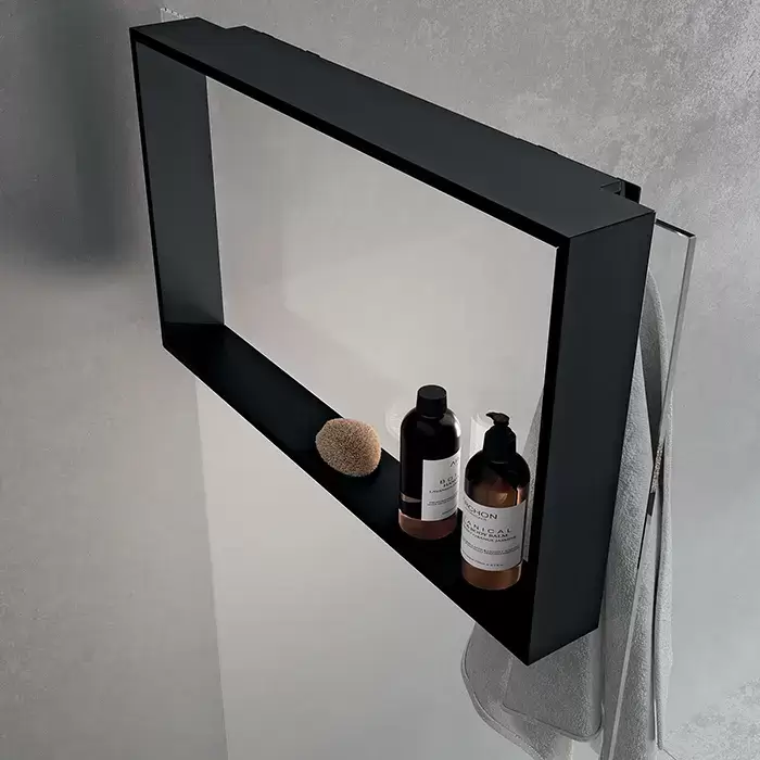 Novellini Kuadra Аксессуары для кабины 70х40cм., с внутренней полкой и внешним крючком, для крепления на стекло, цвет: черный матовый