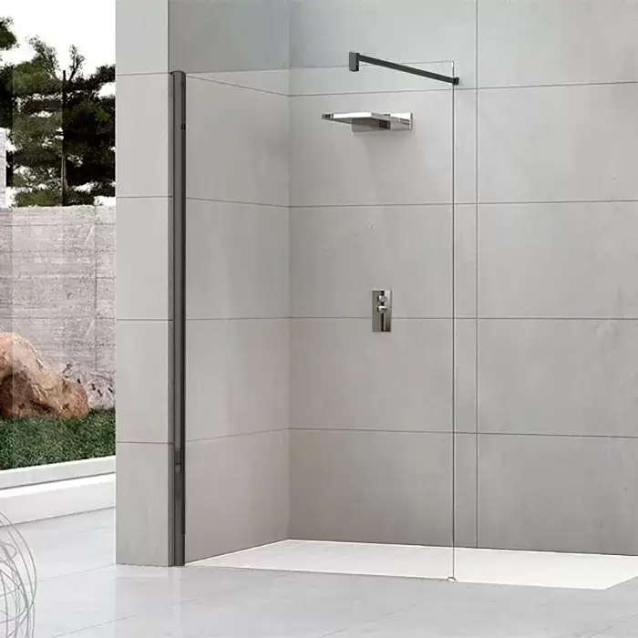 Novellini Kuadra H Душевое ограждение 117-120х205cм., с свободным входом, с настенным кронштейном, стекло прозрачное, цвет: черный матовый