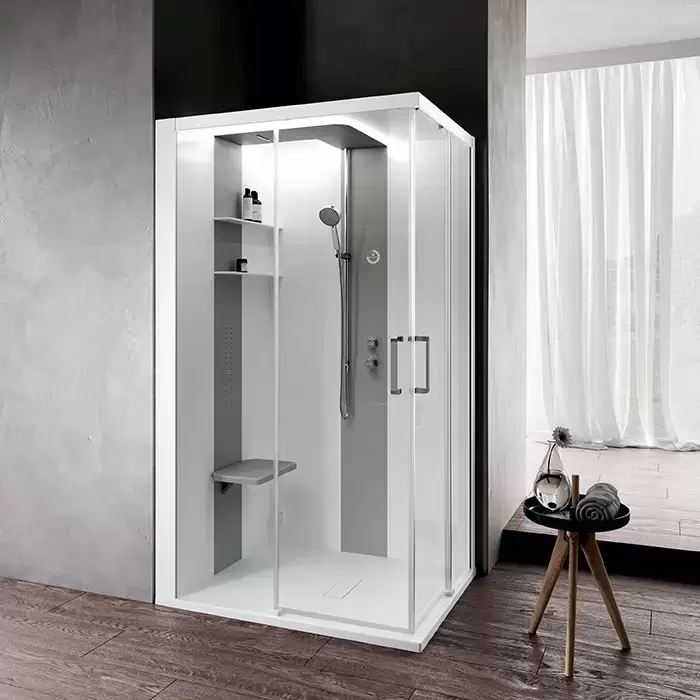 Novellini Skill A Душевая кабина 120х100х217.5cмм., Sx, Essential, поддон 12.5см., с термостатическим смесителем, стекло, цвет: белый глянц/Light grey