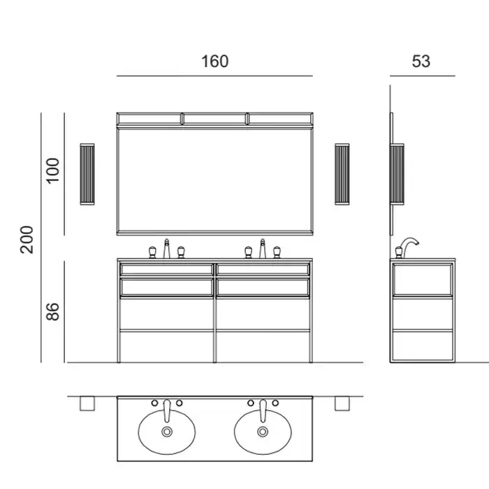 Oasis Academy Композиция №14 Комплект мебели напольный, 160х53хh200см, цвет: smoke mirror/хром