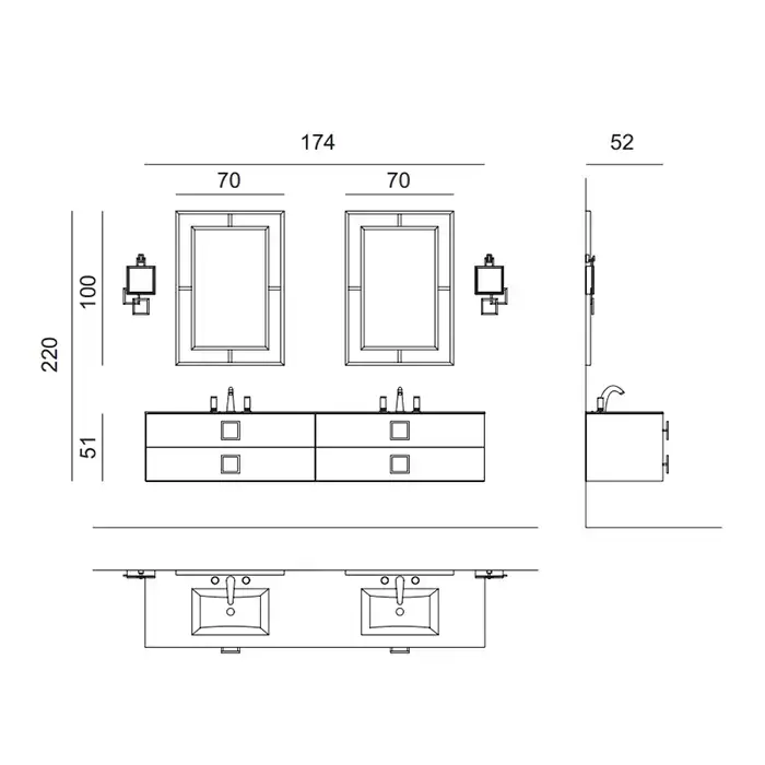 Oasis Daphne Композиция №31 Комплект мебели подвесная, 174х52.5хh220см, цвет: glossy Black/золото